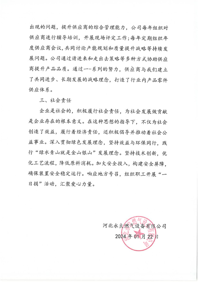 河北永良燃?xì)庠O(shè)備有限公司2024年度社會責(zé)任報告
